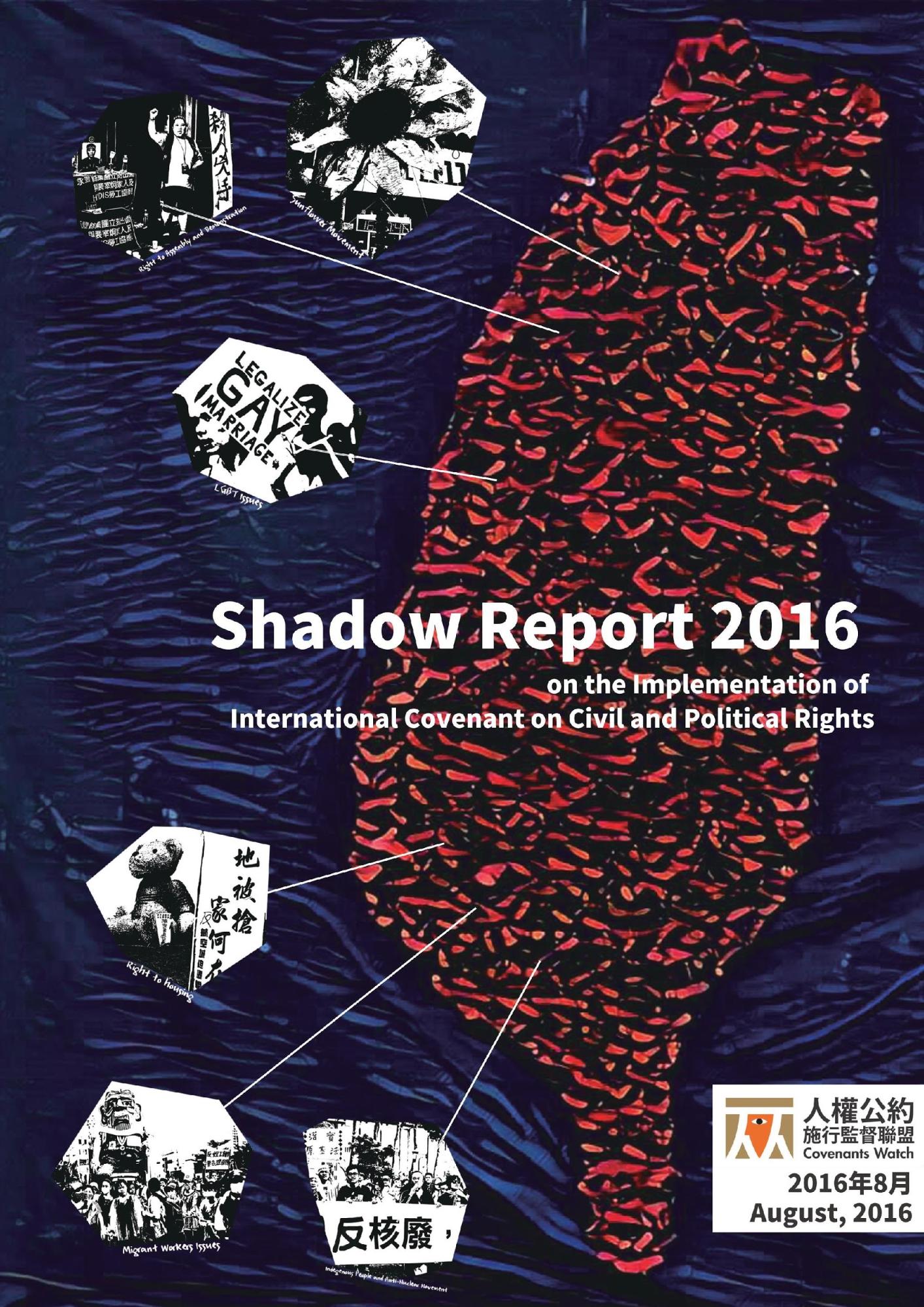 The Shadow Report on the Implementation of the International Covenant on Civil and Political Rights was prepared for two reasons. First, it complements the government report for the review of the second national human rights report in January 2017 by international experts; second, it summarizes the disagreement between civil society organizations and the government with regard to human rights issues in Taiwan between 2013 and 2016.</p></li>